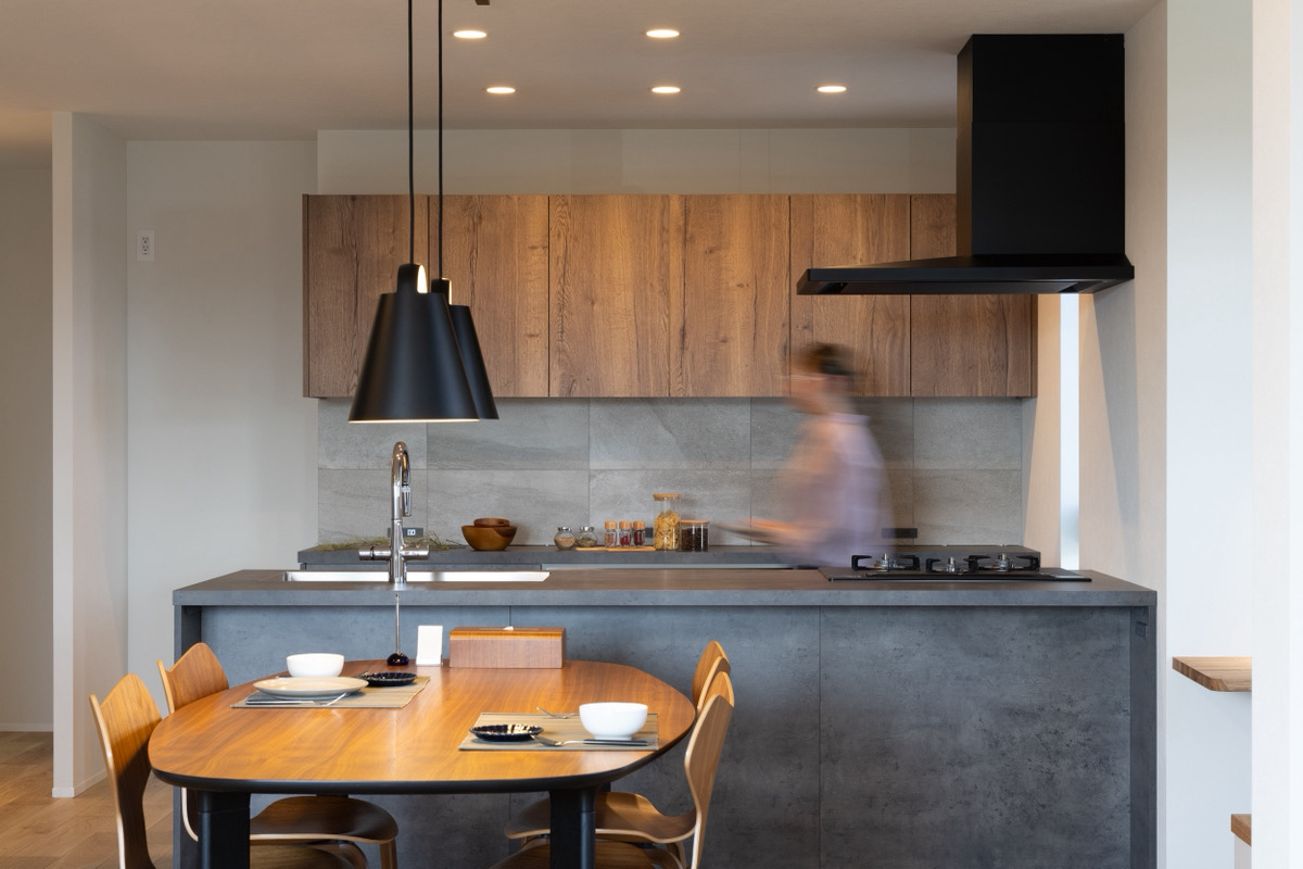 内装には、自然素材の温もりを感じる無垢材や、柔らかな色合いの壁材を使用。