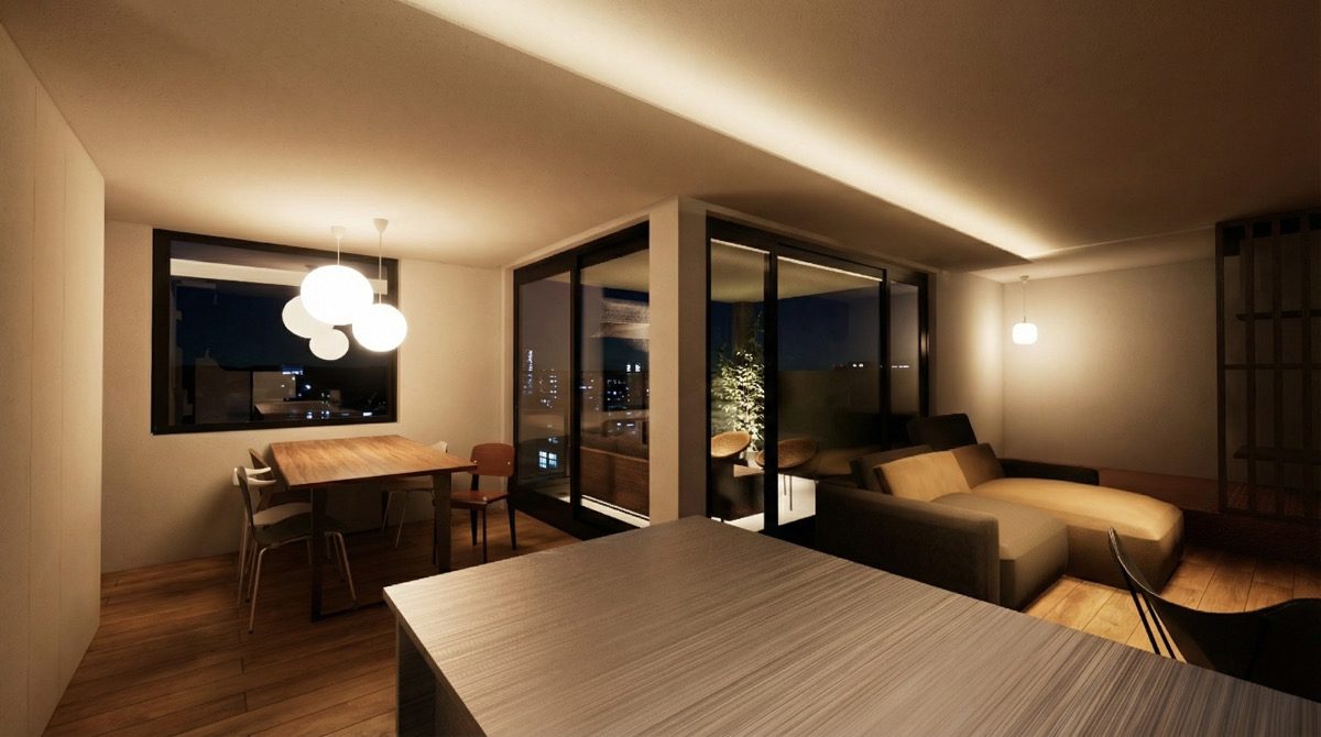 柱や壁の制約が少なくなるため、広々としたリビングや、将来的な間取り変更にも対応しやすい柔軟な大空間を実現しました。