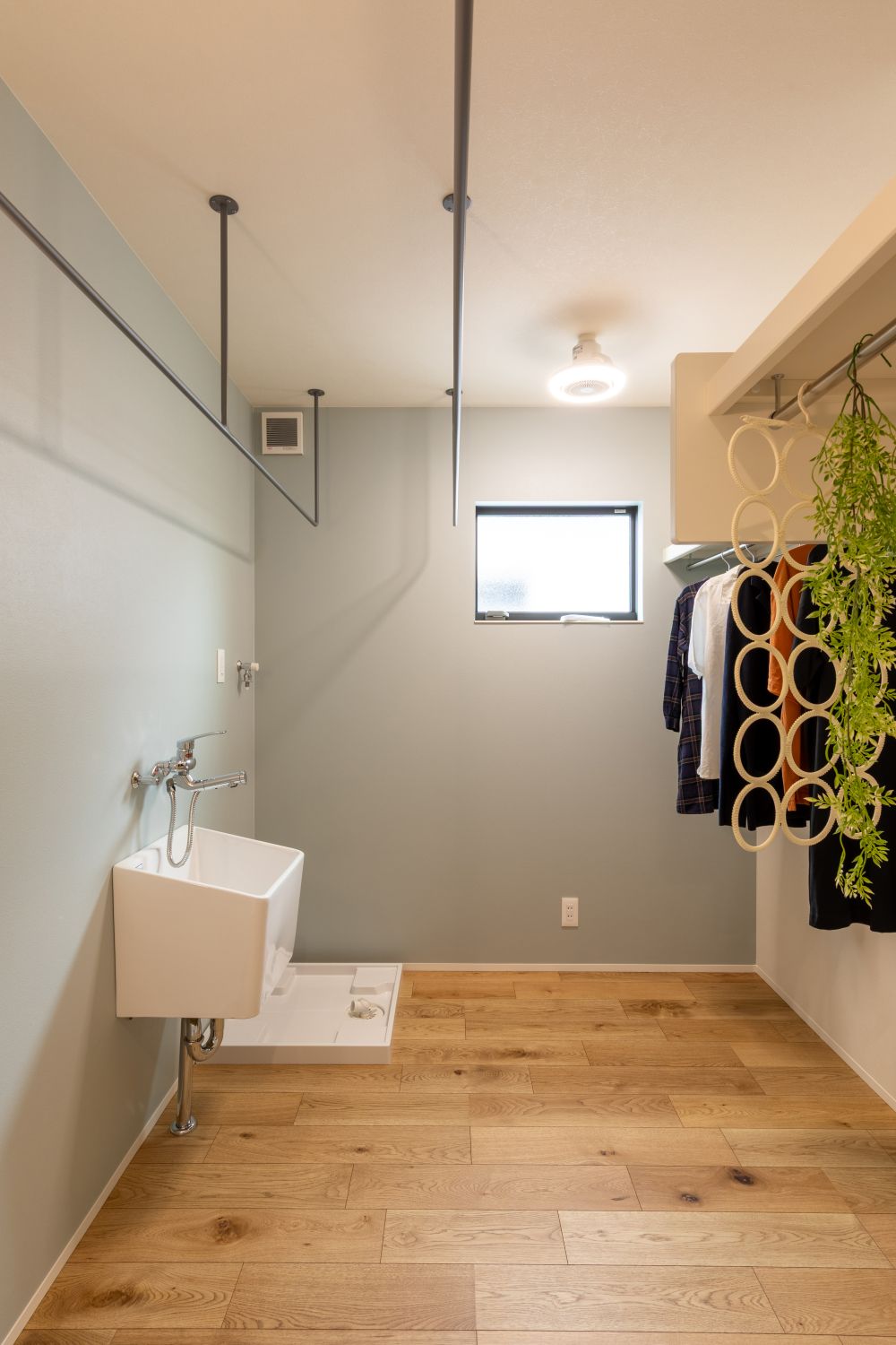 生活動線を考えたLDKは塗り壁が空間にアクセントを加え、木×グレー×ブラックで調和した内装は洗練された雰囲気に仕上がりました。